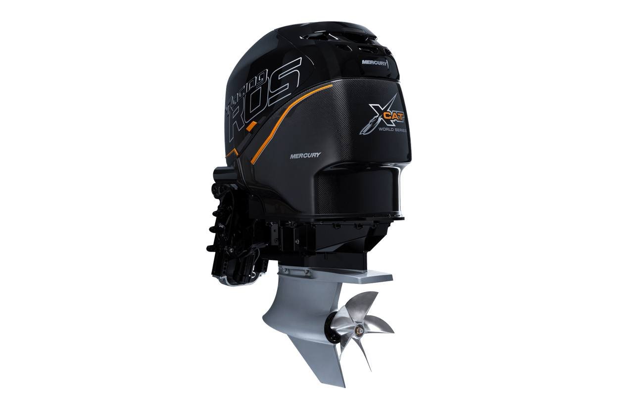 Upon the heels of the highly successful Verado 400R outboard is its sinister competition relative, the Mercury Racing 400 ROS (Race Offshore). The 400 ROS features the 400R powerhead mounted on an all-new race midsection, featuring the competition proven Mercury Racing heavy-duty swivel clamp bracket assembly. A Sport Master gearcase transfers the 400 ROS’s massive power to the water. And to ensure every revolution counts, Mercury Racing has developed an all-new line of CNC cleaver propellers specifically for the 400 ROS.